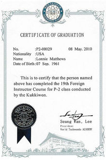 Grandmaster Ms. Lonnie was certified by the Kukkiwon as a Master Instructor.